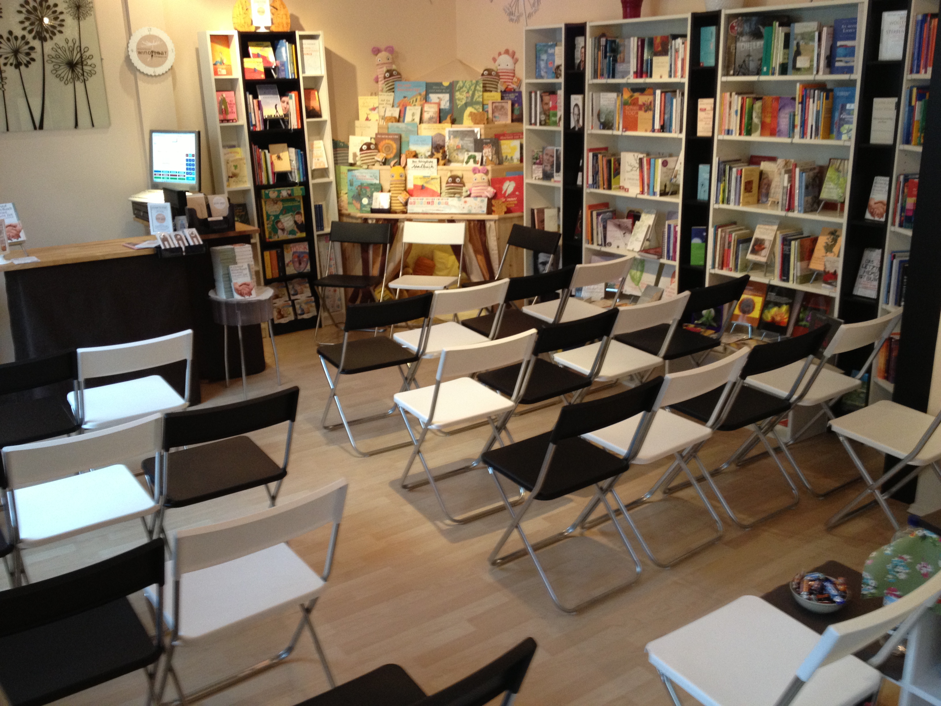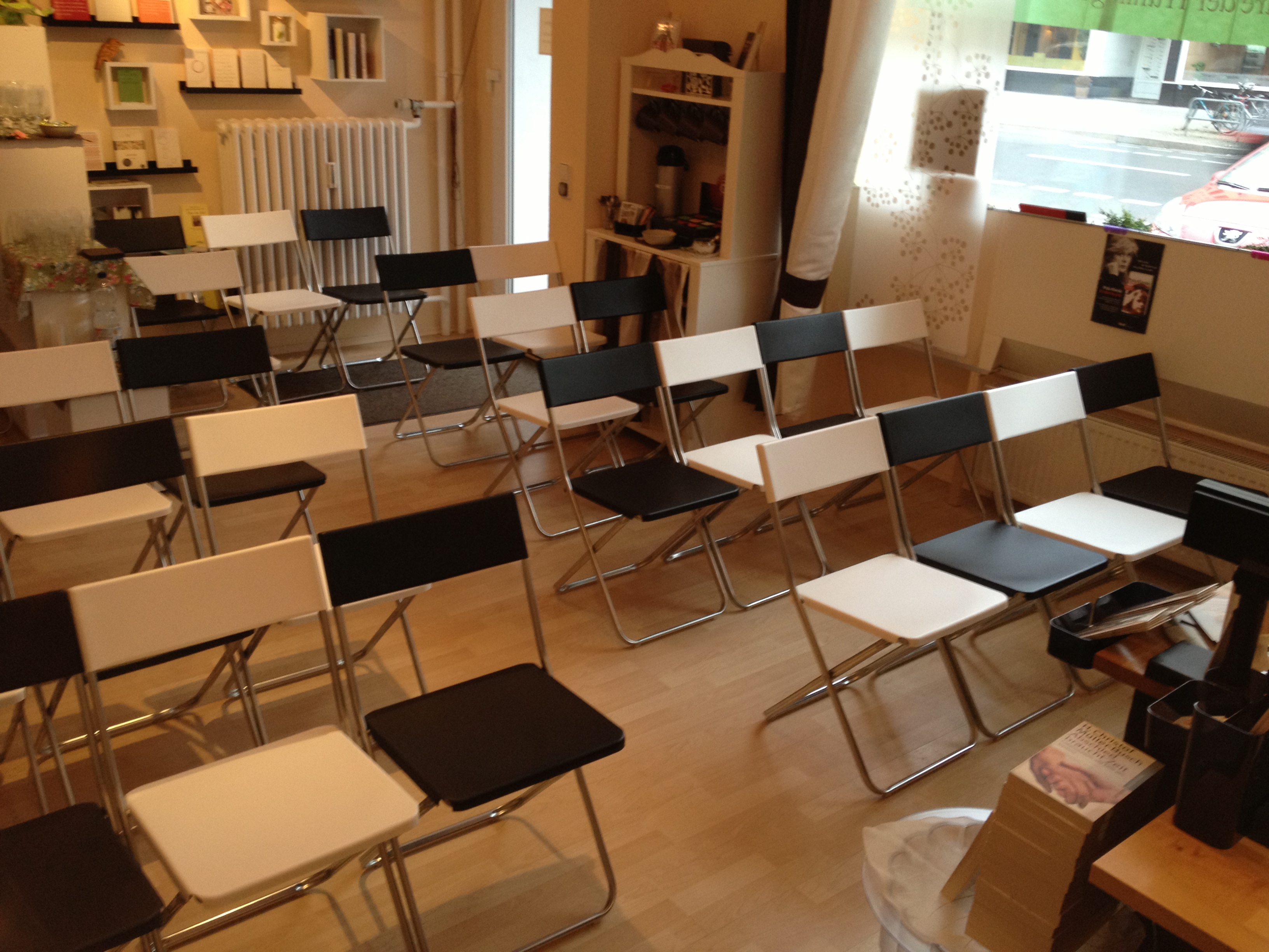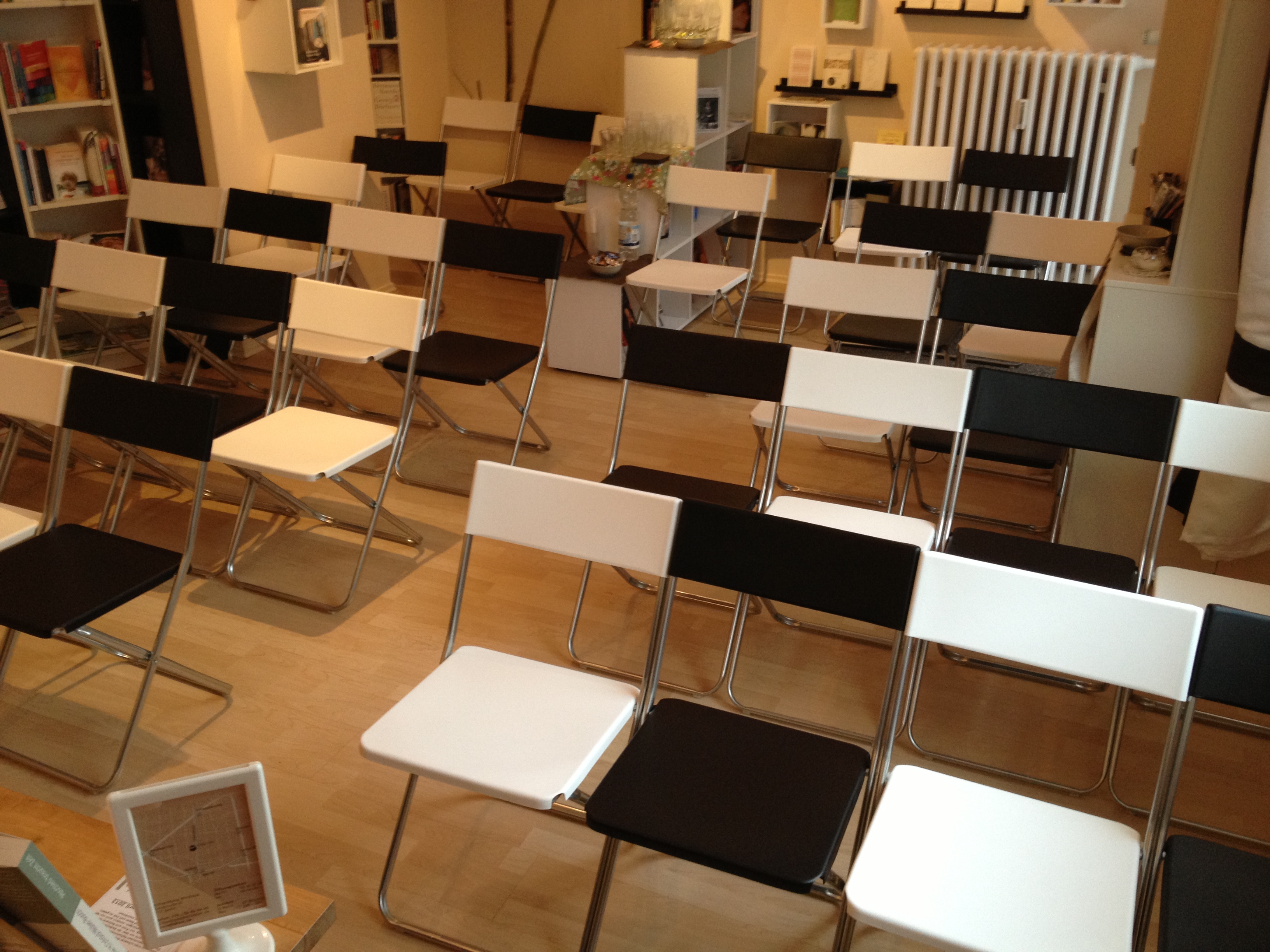 Für unsere Lesungen können im Verkaufsraum bis zu 35 Stühle gestellt werden:
